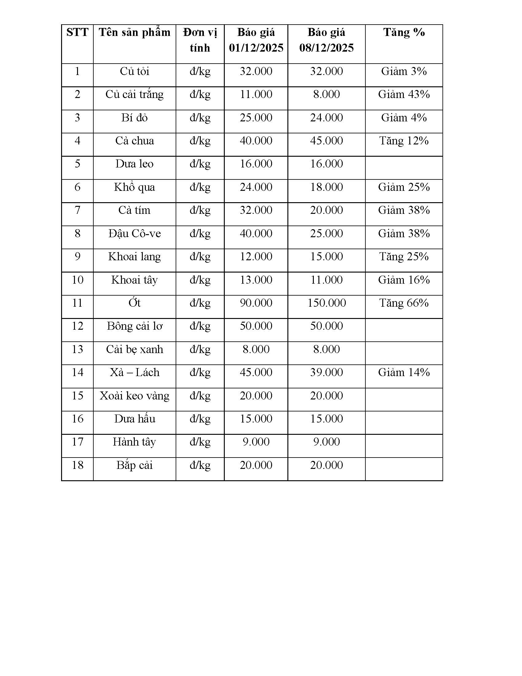 Cập nhật giá một số mặt hàng nông sản tại Chợ đầu mối nông sản thực phẩm Dầu Giây ngày 08/12/2025