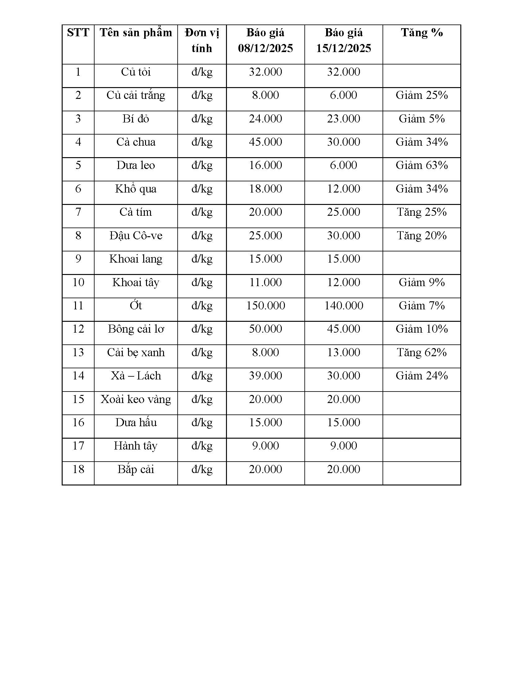 Cập nhật giá một số mặt hàng nông sản tại Chợ đầu mối nông sản thực phẩm Dầu Giây ngày 15/12/2025