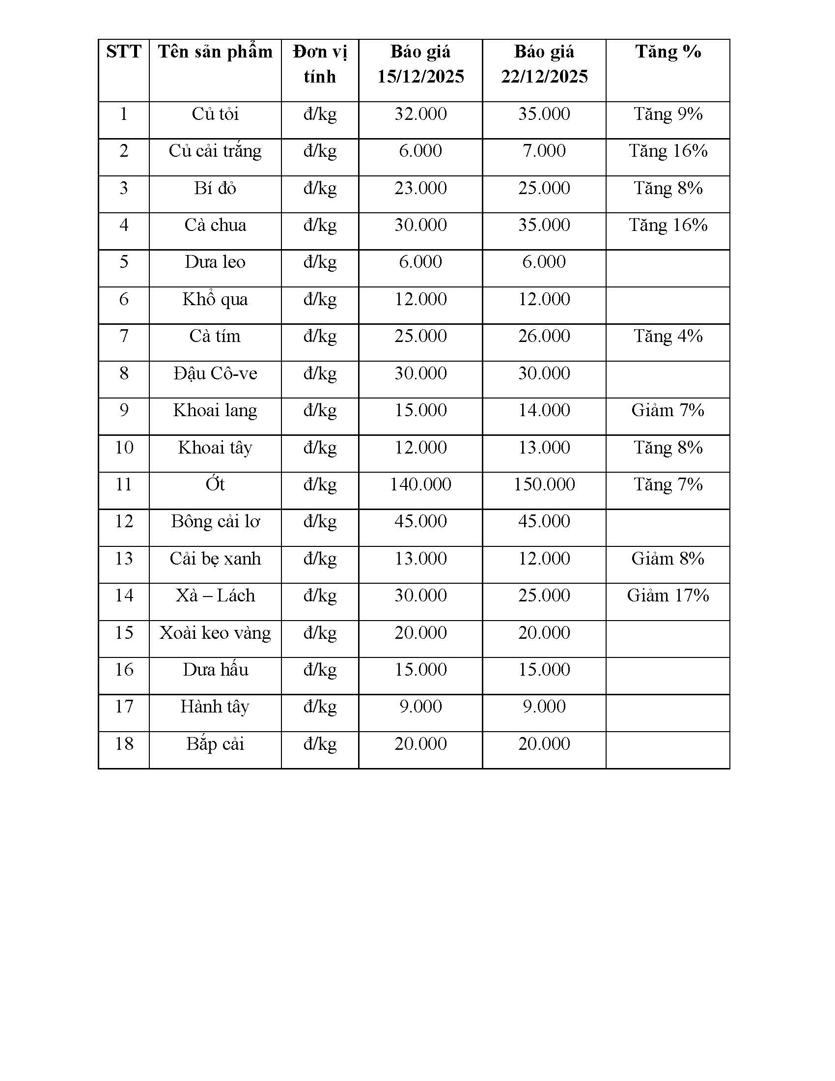 Cập nhật giá một số mặt hàng nông sản tại Chợ đầu mối nông sản thực phẩm Dầu Giây ngày 22/12/2025